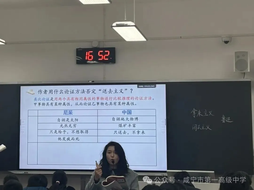 在探讨“送去主义”危害时,学生能答出“类比论证”,却难以阐明如何类比。我没有选择直接讲解,而是唤醒他们的旧知:“还记得《邹忌讽齐王纳谏》吗?邹忌以己之蔽,类比国政之蔽。”接着,我请学生依此逻辑,分析文中尼采与中国“送去主义”的类比。学生迅速领悟,流畅推理出“只送不拿,终将如尼采般陷入绝境,导致亡国灭种”。那一刻,我心中充满“授人以渔”的踏实与喜悦。学生眼中闪过的光亮让我确信,他们收获的远不止一个答案,而是一种可迁移的思辨能力,这正是一堂课所能赠予的最宝贵的成长。