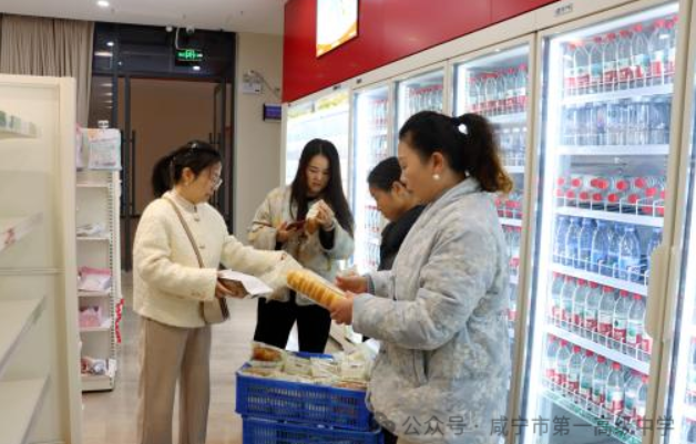 在服务中心负责人刘钟感老师的带领下,家长们首先来到学校超市,随机抽取货架上的食品,仔细核对生产日期与保质期,并查看商品存储环境。超市规范的台账管理与严格的商品准入制度,给家长们留下了深刻印象。